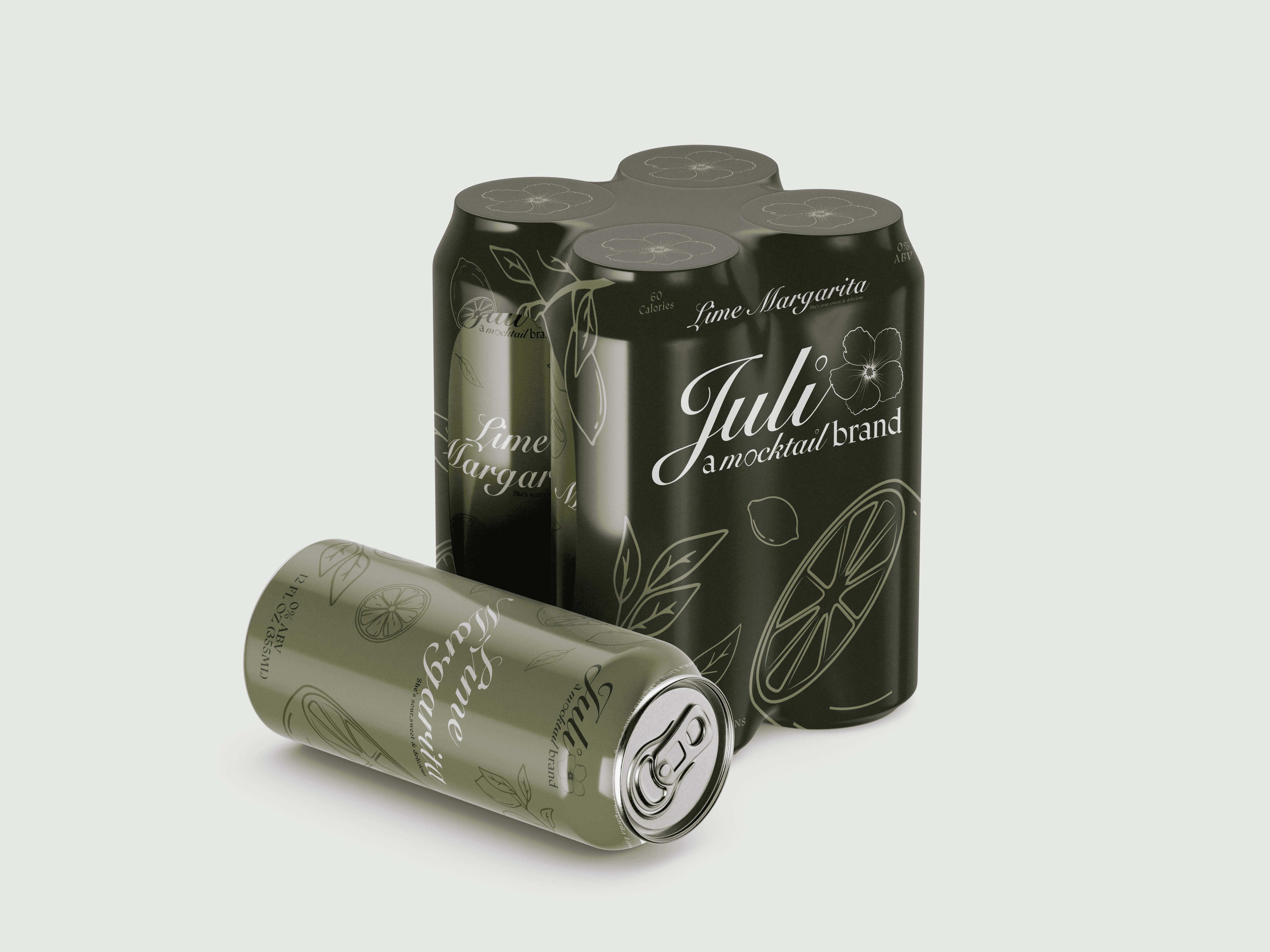 Juli is a conceptual mocktail brand created to introduce a softer, more delicate voice to the mocktail market. The brand embraces elegance, charm, and a sense of vintage femininity. As a nondrinker, I wanted to craft a brand that made non-alcoholic options feel just as special, intentional, and visually captivating as traditional alcoholic drinks.